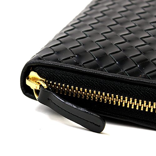 -. Title : (ルミニーオ)luminio 財布 イントレチャート 長財布 札入れ コードバン ホースハイド 馬革 ラウンドファスナー 編み込み メンズ ブラック luha1011