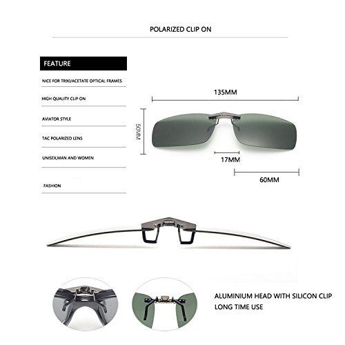 Tacloft Unisex Rectangle 57mm Polarized Clip on Sunglasses CLIPON2015-protect your eyes with this premium grade, classy rimmless sunglasses!