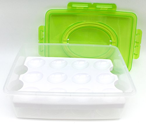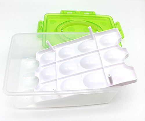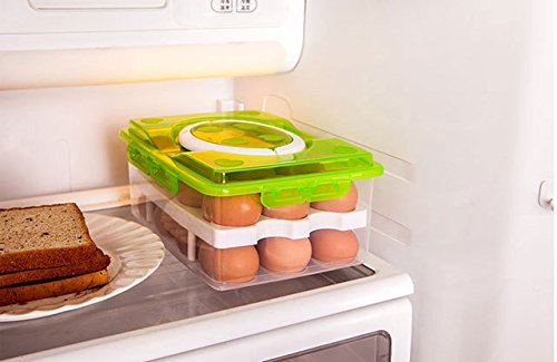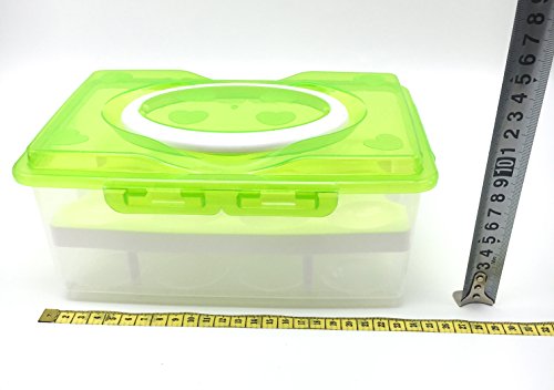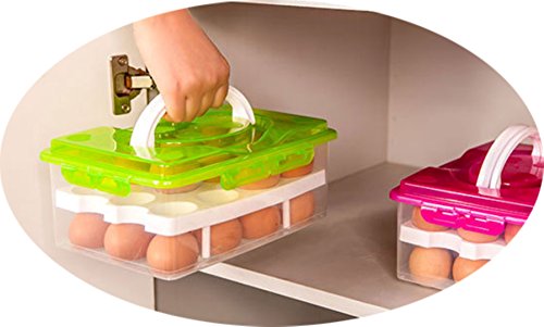 [ Green ] 2 Tier Shockproof Plastic Eggs Container with Handle, Refrigerator Fridge