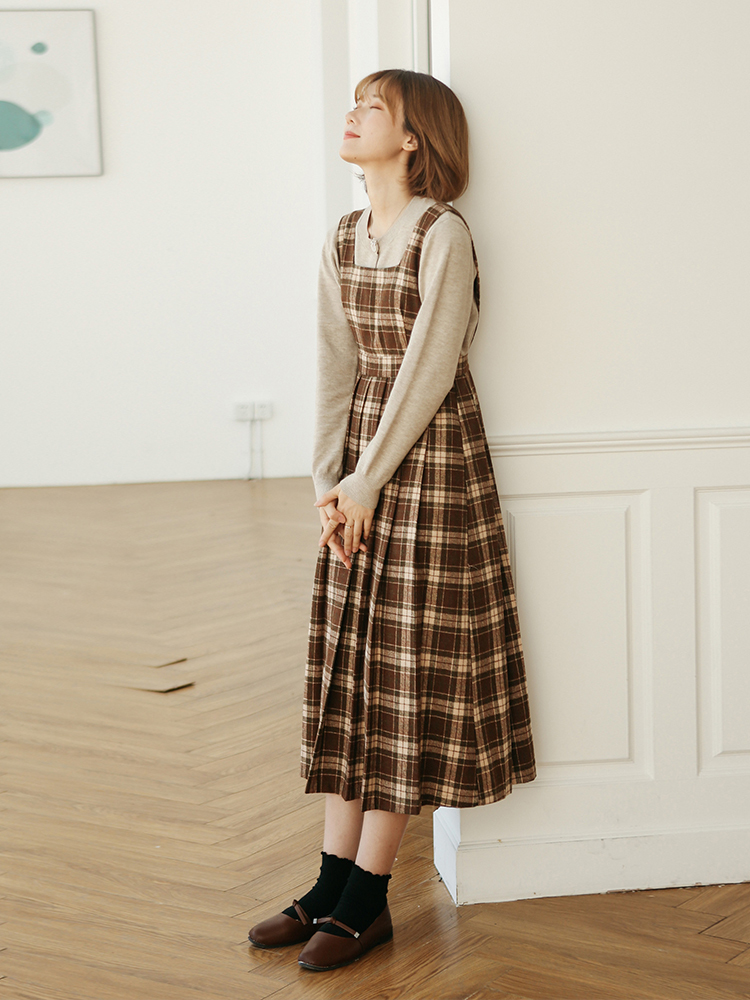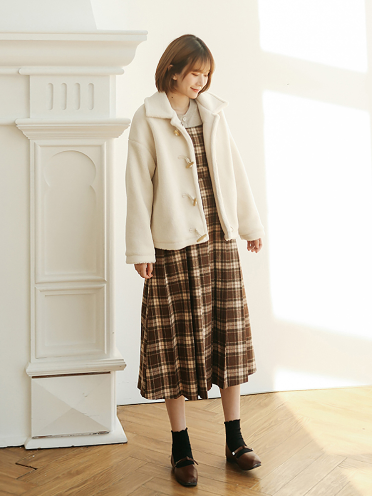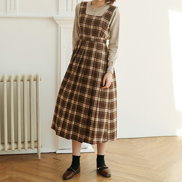 スカート部分はボックスプリーツで、ウエスト部分がら緩やかに広がるシルエットがガーリーな着こなしを叶えます◎