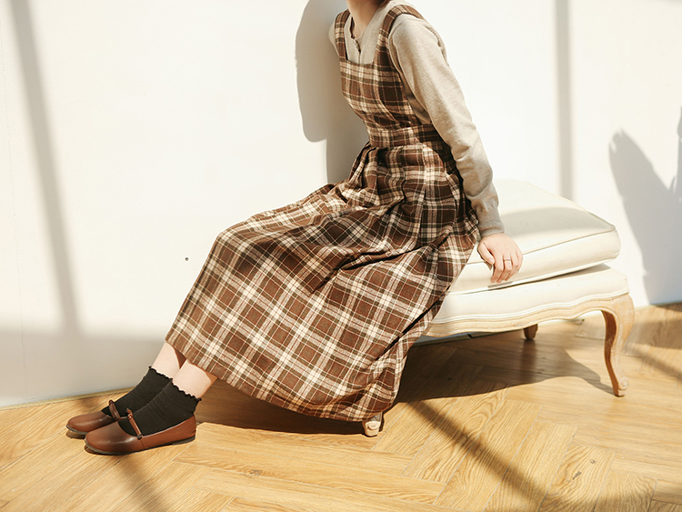 シックな色合いのチェック柄で子供っぽくならないデザイン。