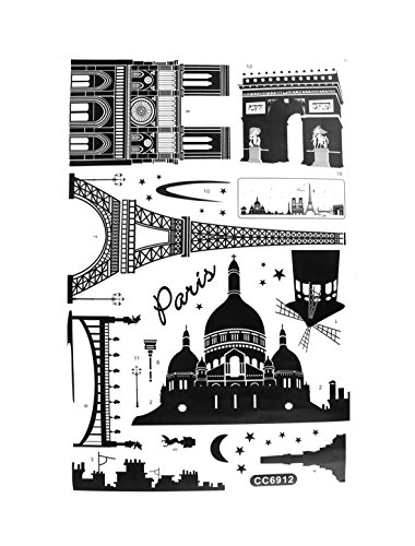 -. Feature : Product Name : Wall Stickers;Pattern : World Landmarks Buildings / Sheet Size : 60 x 90cm/ 24" x 35" (L*W);Material : PVC / Color : Black / Net Weight : 169g / Package Content : 1 x Wall Stickers