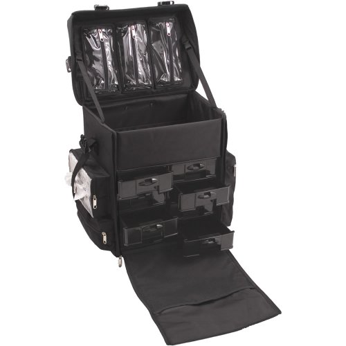 Sunrise Soft-Sided Nylon Rolling Makeup Case with Drawers