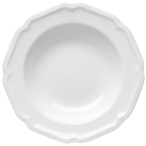 This uniquely-shaped all-white design adds a touch of elegance to a traditional setting. It coordinates perfectly with both formal and casual stemware and flatware as well as our own Antique Orchard pattern. There is a complete suite of accessories to create a classically stylish casual dining statement. This high quality porcelain pattern is dishwasher safe, microwave safe and chip resistant. The 9 1/4" soup bowl holds 14 oz.Feature