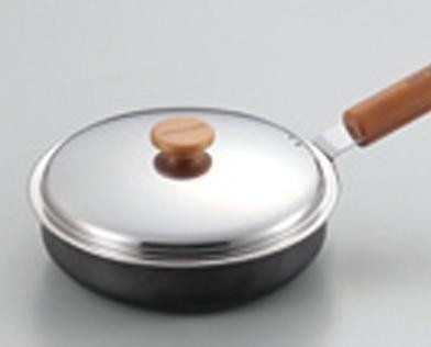 | 丈夫で高温調理できる黒皮鉄板仕様のフライパン。ステンレス鋼の段付20cm鍋と16cm鍋をセット。 |