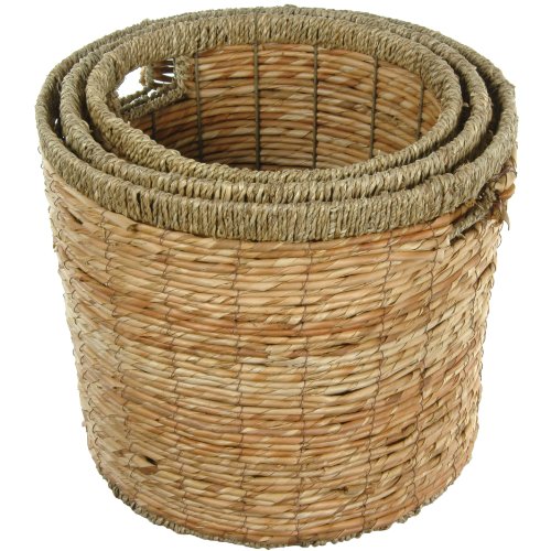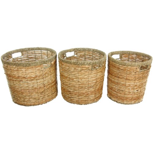 Oriental Furniture Rush Grass Round Waste Bin ( Set of 3 )(B)
