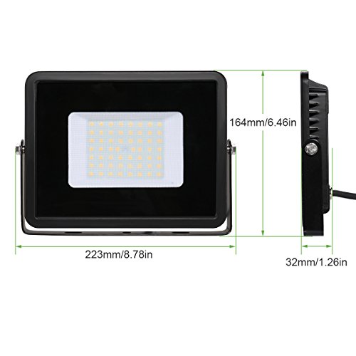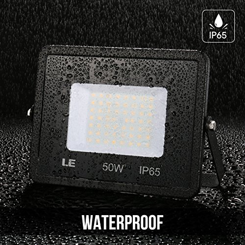LE 50W LED Flood Light, 150W HPSL Equivalent, Waterproof IP65 4000lm Warm White 3000K 100° Beam Angle Super Bright Outdoor Work Light Floodlight (No Plug)