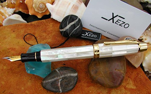 -. Title : Xezo Maestro Handcrafted from New Zealand Natural White Mother of Pearl 18-Karat Gold Plated Executive Fountain Pen with Serial. No two Pens are Alike