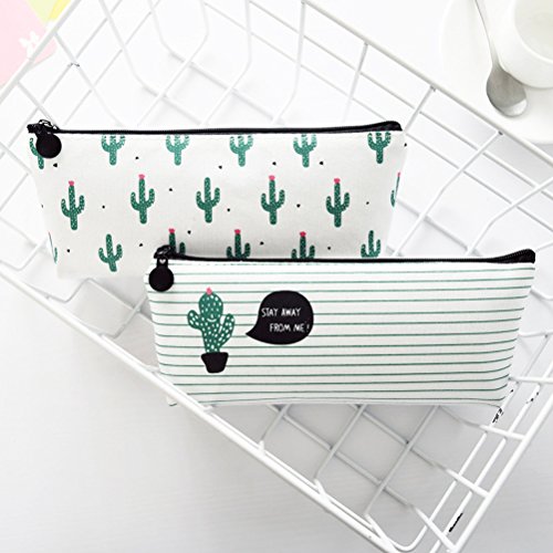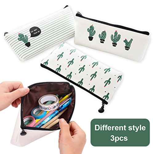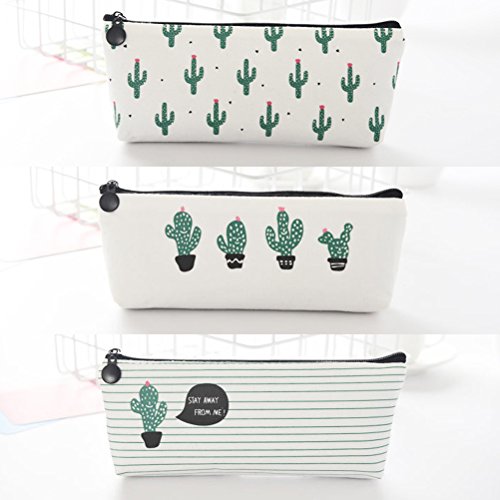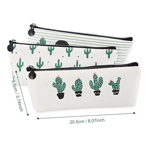 Pencil Case Cactus, Set of 3 Canvas Student Pen Case Pouch Coin Purse Pouch Cosmetic Makeup Bag by Shellvcase
