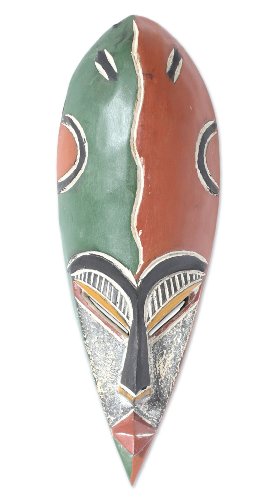 NOVICA Decorative Nigerian Large African Rubber Wood Mask, Multicolor 'Marsona'