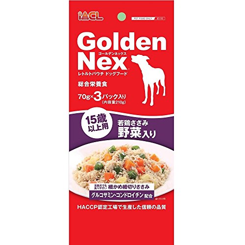 原材料:ササミ、野菜類(にんじん、じゃがいも、かぼちゃ、いんげん豆)、コーンスターチ、寒天、増粘安定剤(グァーガム、カラギナン)、食塩、ミネラル類(Ca、K、Fe、Cu、Mn、Zn、l)、紅麹、塩化コリン、グルコサミン、コンドロイチン、ビタミン類(A、D3、E、B1、B2、ナイアシン、パントテン酸、B6、B12)、ポロデキストロース