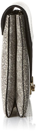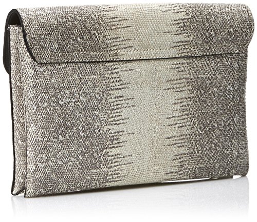 -. Feature : Large envelope clutch featuring two compartments and hideaway cross-body chain strap