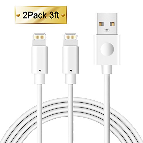 iPhone Charger Cable, Teletrogy 2pcs 1m/3ft iPhone Cable Durable iPhone USB Cord Charger & Sync Data Cable for iPhone 7 Plus 6s Plus 6 Plus 5s 5c SE iPad Pro Air 2 mini 2 3 4 - White