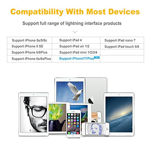 √ Perfect Compatibility: Complete charge and sync for iPhone 7 Plus iPhone 7, iPhone 6s Plus iPhone 6s iPhone 6 iPhone Plus 6, iPhone 5s 5c 5 SE, iPad Pro, iPad Air Air 2, iPad mini 2 3 4, iPad 4th gen, iPod Touch 5th gen.