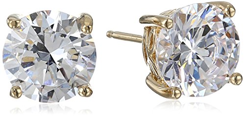 Yellow-Gold-Plated Sterling Silver Swarovski Zirconia (5cttw) Round Stud Earrings