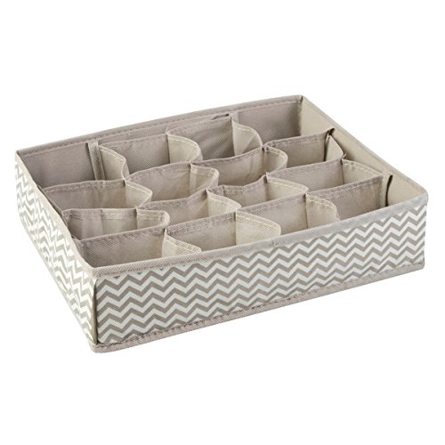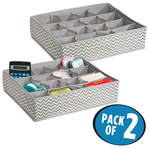 mDesign Fabric Desk Drawer Storage Organizer for Office Supplies, Tape, Paper Clips, Push Pins, Notepads - Pack of 2, 16 Compartments Each, Taupe/Natural
