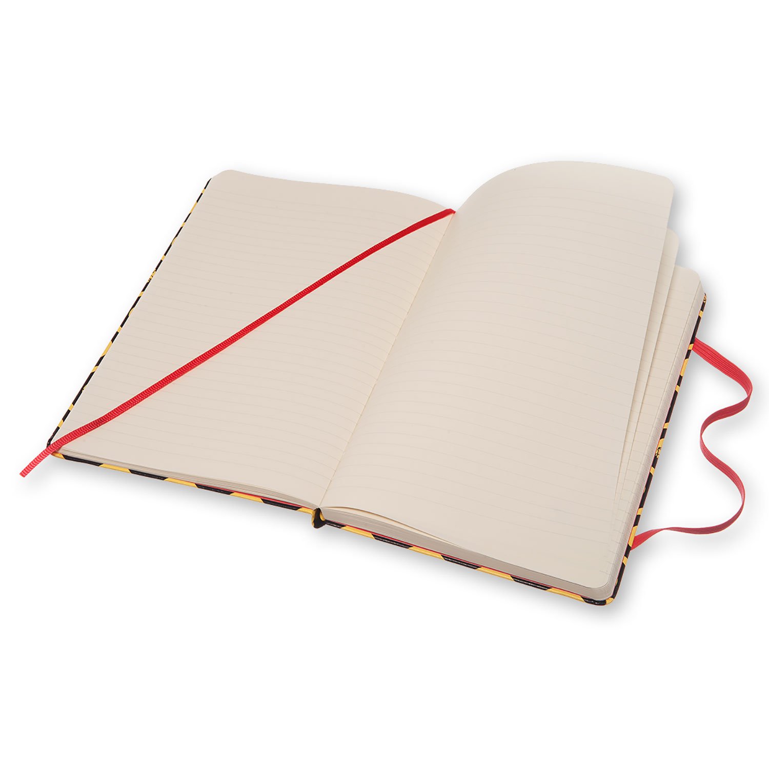 On the cover based on yellow, a light red rubber band and a bookmark ribbon stand out.