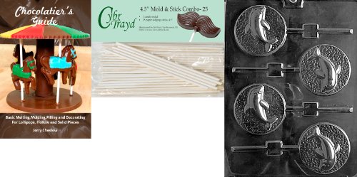 Cybrtrayd 'Dolphin Lolly' Nautical Chocolate Candy Mold with 25 4.5-Inch Lollipop Sticks and Chocolatier's Guide
