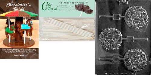 Cybrtrayd 'No.80 Lolly' Letters and Numbers Chocolate Candy Mold with 50 4.5-Inch Lollipop Sticks and Chocolatier's Guide