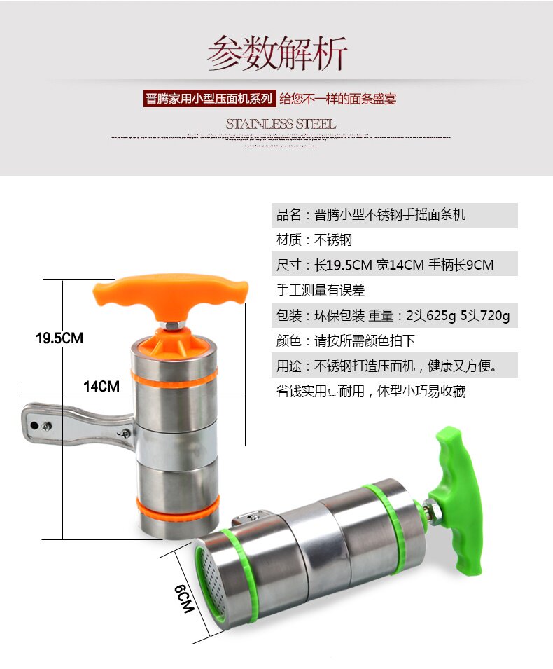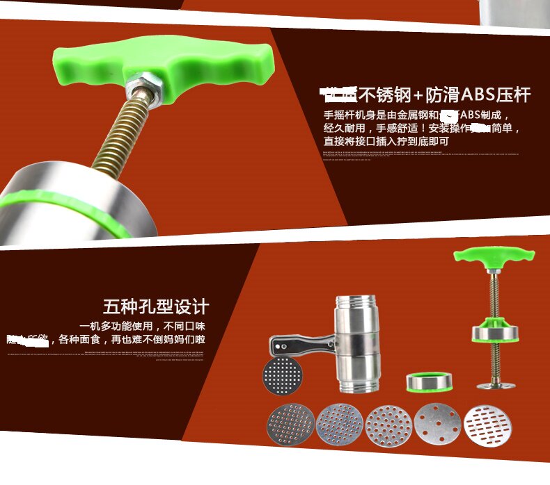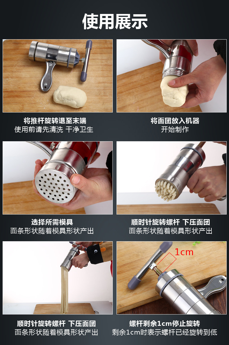 家用5模具手动不锈钢 压面机 小型家庭 面条机 手摇压面器