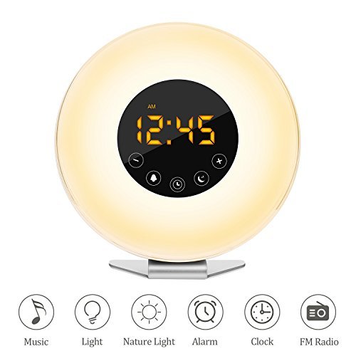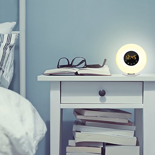 Wake Up Light, Cozime 2017 New Design Digital Sunrise Alarm Clock, Sunrise/Sunset Simulator, 7 Colors Night Light (Touch Control, FM Radio, Nature Sounds, Snooze Function For Heavy Sleepers)