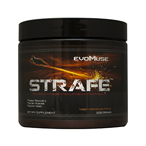 -. Binding : Health and Beauty -. Brand : Evomuse -. EAN : 0780742996877 -. Feature : mTOR Activator / May Help Increase Protein Synthesis...While You Sleep! / May Help Decrease Muscle Breakdown and Preserve Muscle Tissue / May Help Increase Lean Muscle Mass / May Help Enhance Post Workout Muscle Recovery -. Label : EvoMuse -. Manufacturer : EvoMuse -. PackageQuantity : 1 -. ProductGroup : Health and Beauty -. ProductTypeName : HEALTH_PERSONAL_CARE -. Publisher : EvoMuse -. Studio : EvoMuse -. Title : Strafe, Protein Synthesis Stimulator by EvoMuse - 220g, 22 Servings -. UPC : 780742996877