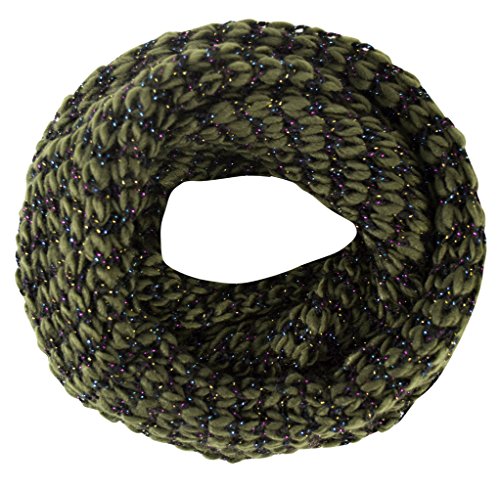 Binding : Apparel Product Description Brand New Chunky Knit Scarves By Peach Couture (A Registered Trademark) Don't fear the cold weather this winter season because Peach Couture has the perfect variety of scarves and infinity loops to keep you warm and cozy for the entire season! Calling all the fashionistas out there this one's for you! This artistically designed knitted scarf will bring you many days of warmth and style! Carefully knitted, this multicolored infinity loop scarf has sequins and colors knitted in a crochet pattern which is both gorgeous and eye catching! What's winter without a beautiful scarf to complete your winter outfit? This lovely scarf is ideal for a cool and fun look! Featuring a wonderful knitted design just like grandma would make, this scarf is perfect whether you're going out for a casual day with friends or for a day in this office this lovely infinity loop scarf is the ideal choice for any occasion. This extra lengthy scarf is extremely versatile and can be worn in many different ways for effortless style. It can be worn as a basic scarf draping down, a doubled scarf for extra dimension and style to your outfit, as a shrug, or even around your head to protect your head and ears from the frigid winter weather. 0