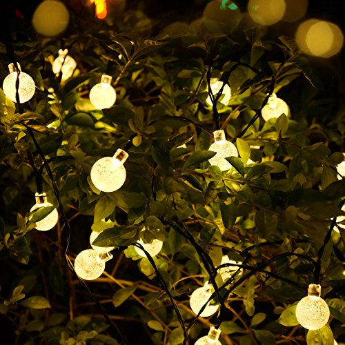 [8 modes ]CREATIVE DESIGN Solar String Light, 17.4Ft 30 LEDs Crystal Ball Outdoor String Light, Waterproof Globe Fairy String Lights Starry Light for Home, Party ,Garden (Warm White)