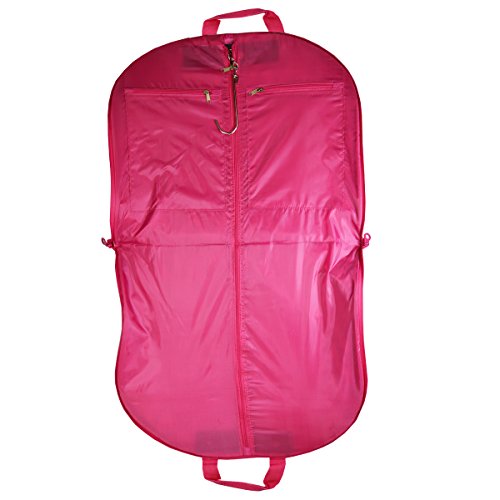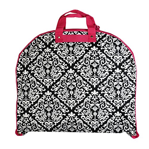 -. Brand : Ever Moda -. ClothingSize : X-Large -. Color : Damask Fuschia Trim -. Department : womens -. EAN : 0802745670698 -. Feature : 600 Denier Polyester Nylon lining / Metal hook for hanging multiple pieces of clothing / 2 interior zippered pockets for shoes, accessories etc. / Clothes stay neat and wrinkle free / Bag will bifold, with top carry handle to perform as a carry on -. ProductGroup : Apparel -. ProductTypeName : LAGE -. Size : X-Large -. Title : Ever Moda Designer Print Collection 40-inch Hanging Garment Bag -. UPC : 802745670698
