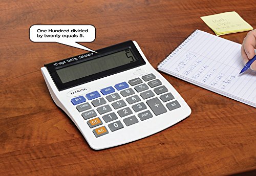 -. Feature : Easy-to-read LCD display / Wide, 10-digit screen / Large buttons / Clear human voice speaks as you enter the data and make calculations