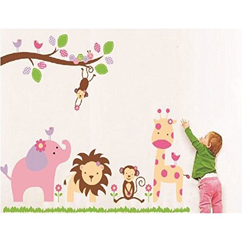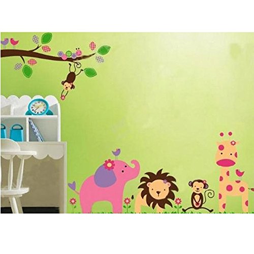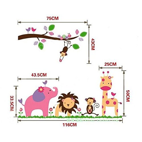 -. Title : MLM 46" x 20" Cartoon Jungle Zoo Animals Tree Hanging Monkey Removable Wall Sticker Decals for Boys and Girls Children's Nursery Baby Room Wall Décor Art Sticker Decals