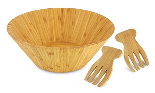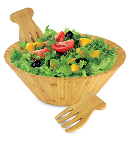 Includes Bamboo Bowl and Pair of Salad Hands - Made from High Quality Bamboo