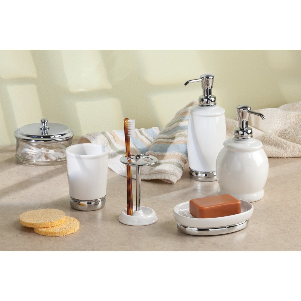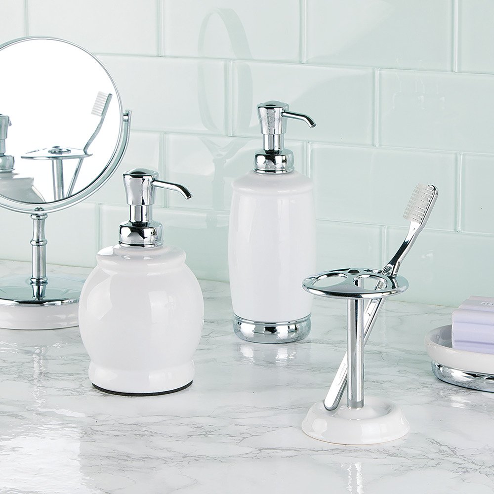 It features durable white ceramic finish and chrome accents.
