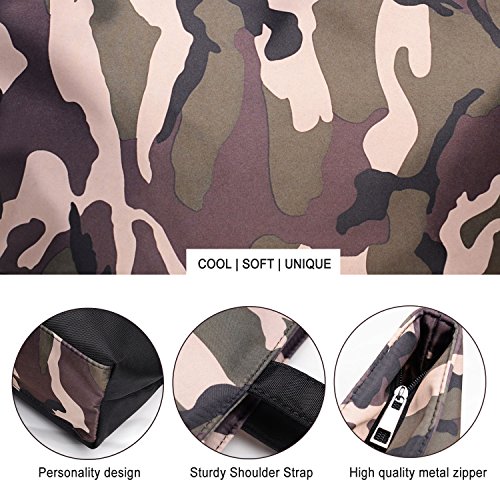 FEATURES:High-quality Camouflage Fabric,Thick Embroidery Cloth,Quality Nylon Shoulder Strap,Electrooptical Pull Head,Bottom Splice Design,Internal Independent Barrier,Bottom Cloth Design,Easy to Clean and Dry.