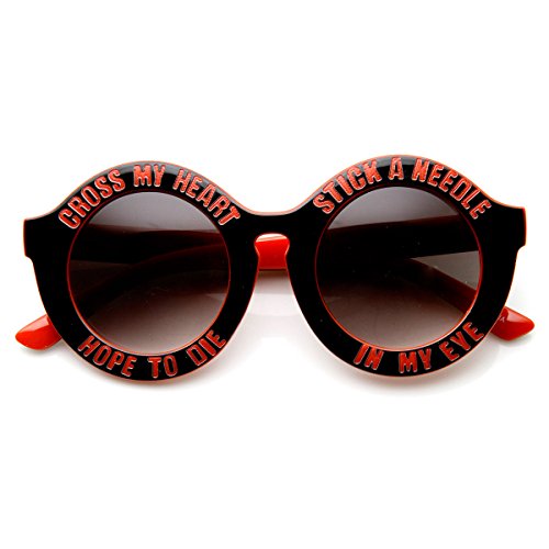 -. Title : zeroUV - Womens Oversized Cross My Heart Text Font Round Sunglasses