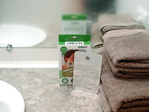 ⍟ PORTABLE. It’s very important to save space when you are going to a trip. We found perfect size to fit the shower mirror in any hand luggage. You can shave use our mirror without any inconveniences as size is enough to see your whole head despite the small size.