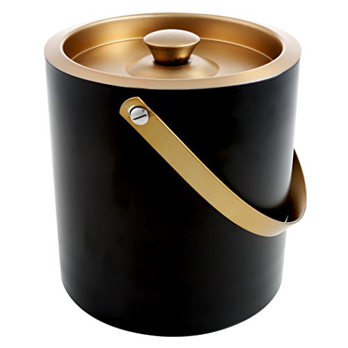 -. Title : Cambridge Silversmiths Dorian Brass and Black Ice Bucket, 3 quart, Stainless Steel