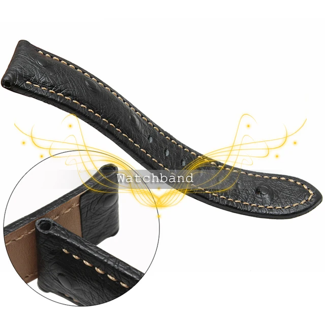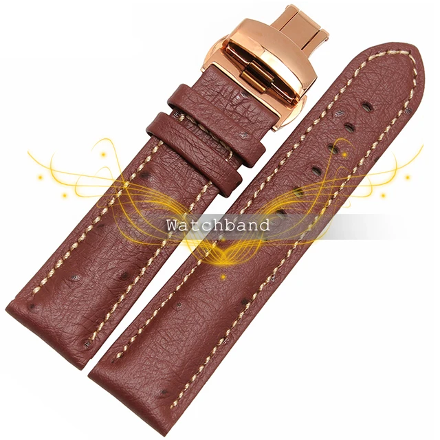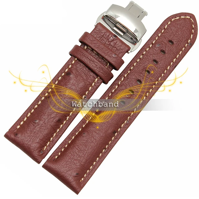 | [해외] 무료 shipping18mm 20 미리메터 22 미리메터 블랙 브라운 타조 곡물 골드 나비 버클 소프트 정품 가죽 시계 밴드 스트랩 |