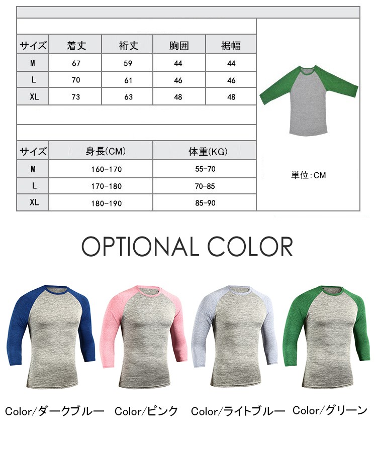 ラグランTシャツ 七分袖Tシャツ カットソー メンズ Tシャツ トップス 七分袖 吸汗速乾 メンズファッション