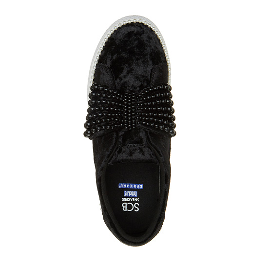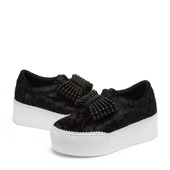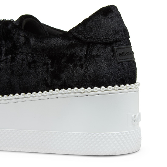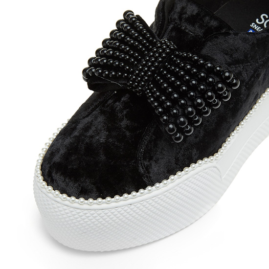 - 진주와 리본이라는 로맨틱 오브제를 사용하여 만든 스니커즈.
