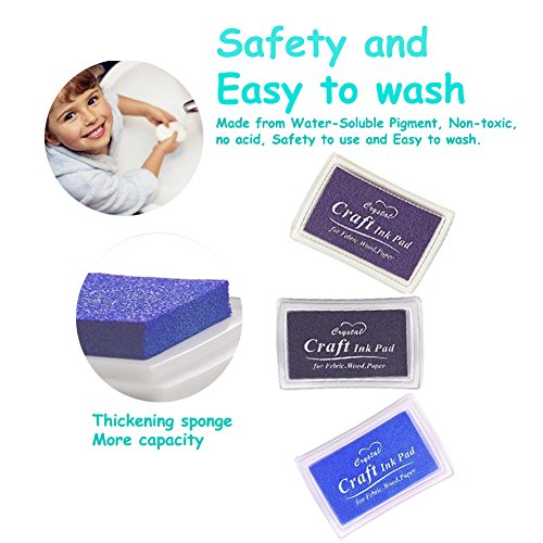 - Safety material: The ink pad is made from environmental pigment. Non-toxic, no acid,safely for use. Large capacity (Each pad is 3*2*0.7 inches) which is enough to make a lot of art projects!