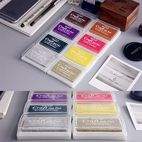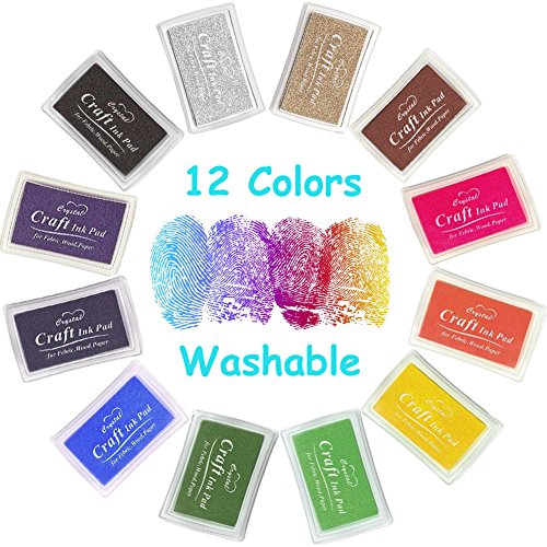 Stamp Ink Pad NISHLEY Ink Pad Stamps 12 Colors Water-Soluble Stamp Pad for Rubber Stamp DIY Scrapbooking Finger Paint-Pack of 12