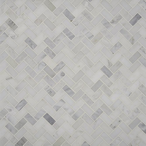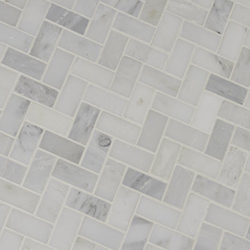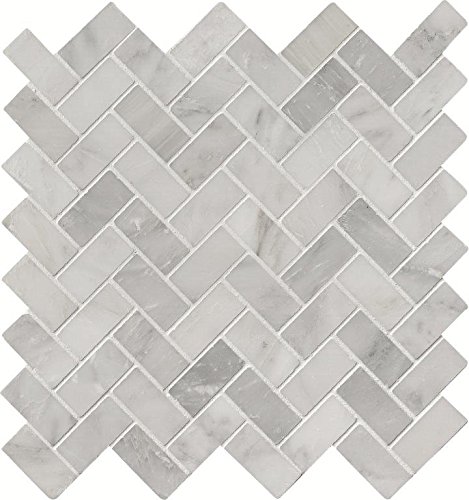 M S International Arabescato Carrara Herringbone 11.63 In. X 11.63 In. Honed Marble Mesh-Mounted Mosaic Tile, (9.4 sq. ft., 10 pieces per case)