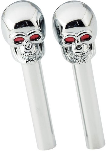 -. Feature : Chrome skulls door lock knobs with red eyes / Adds style to your vehicle / Comes with directions and easy to install / 2-pc set / Coordinated with other skull auto accessories