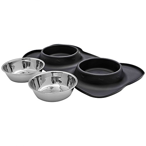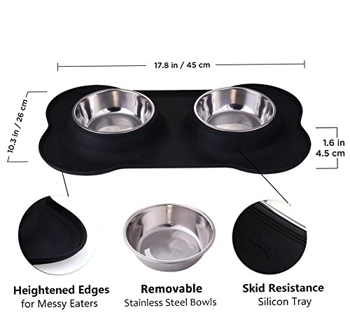 - Easy to clean :The silicone and stainless steel dual dog bowl set can be rinsed or wiped clean quickly after each use with our easy to remove when ready stainless steel feeding bowls. It's also top shelf dishwasher safe so your pet can always have clean water and a healthy meal.