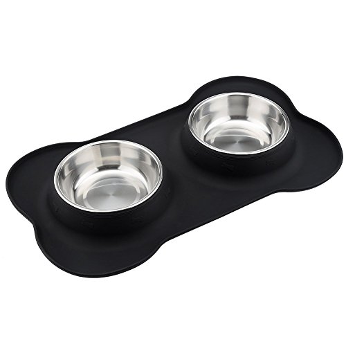 GOGOKING Dogs Bowl Dog Bone Shape Silicone Pet Bowls 12 Oz Feeder Dog Bowl Double Bowl Dog Bowl Set For Dogs Cats And Small Pets (black)