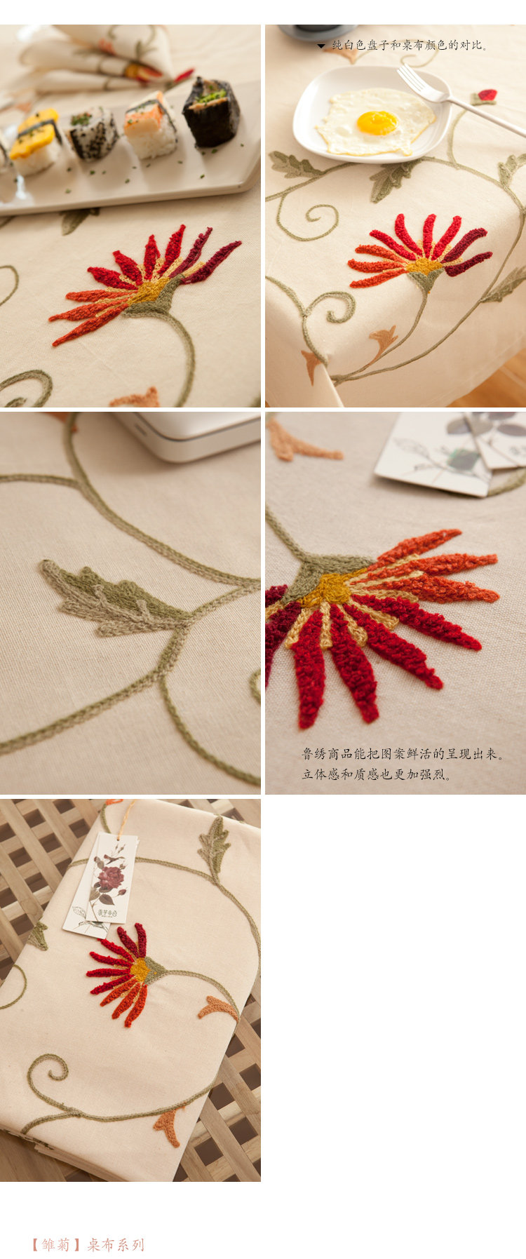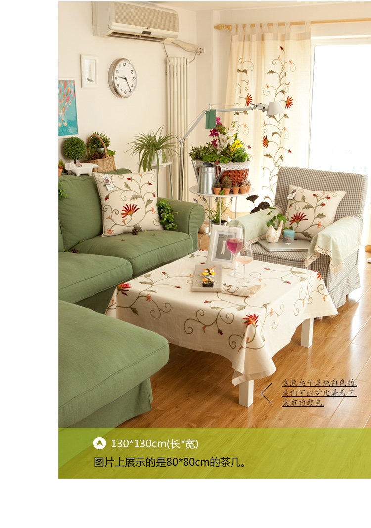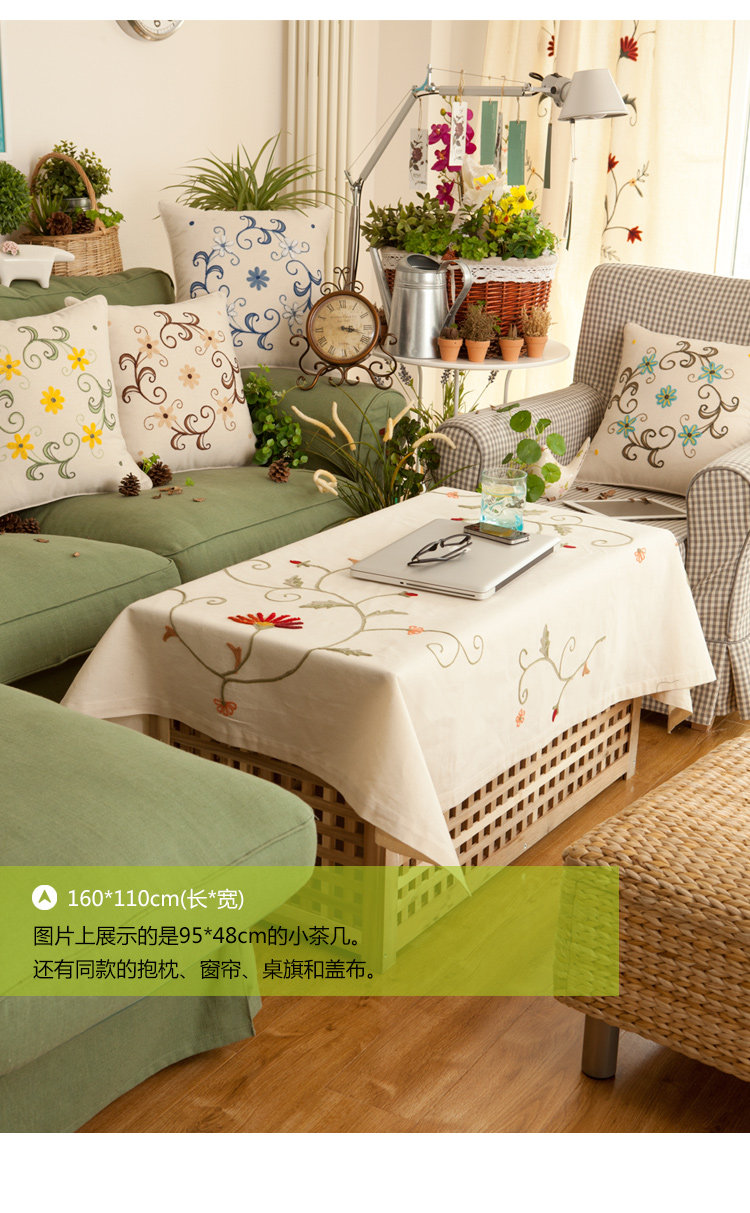 美好雏菊花田园布艺盖布 欧式棉麻台布 餐桌布 鲁绣刺绣茶几桌布