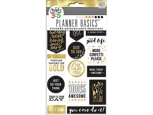 - Sticker seize the day gold- over 340 stickers include stars, flowers, arrows, pennant Flags, circles, and captions