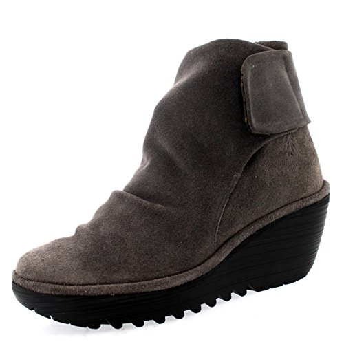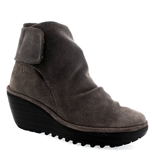 Studio : Fly London Publisher : Fly London Binding : Apparel Product Description Fly London Yegi feature a smooth leather upper, soft breathable microfiber lining, round toe front, chunky rubber wedge heel, ruffled vamp section, ankle boot design, contrasting stitching accents, adjustable Velcro strap fastening and the Fly London Fly logo embroidered on the outer side. 0