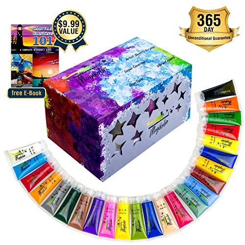 Acrylic Paint Set | Large 24 Color Kit with 1 Oz Tubes | Heavy Pigment Load, Artist Quality Acrylics | Prime Painting Supplies for both Kids & Adults | Water Based, Non Toxic, Safe Paints by Magikolor
